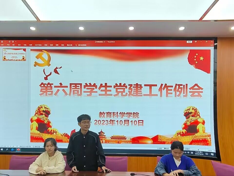 为提高我院党建工作联合会各部门协调性,10月10日中午,我院学生党建工作联合会于东校区明德楼学院会议室召开第六周工作例会。本次例会由我院学生党建工作联合会会长温子贤主持,我院学生党建工作联合会副会长陈秋兰、钟曦琳及党建工作联合会全体成员参加。