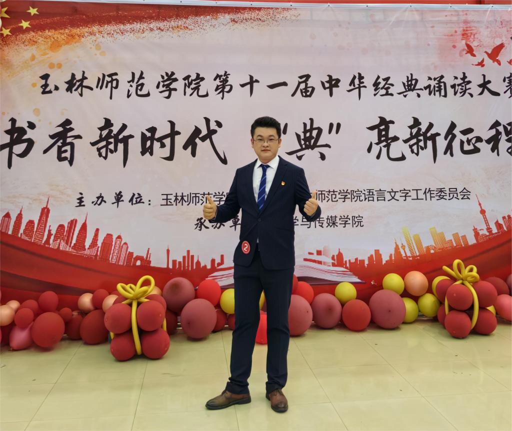 在玉林师院这片沃土上,周向阳老师心怀感恩,从不计较个人得失。虽然平时的工作很忙,但凭着对教育事业的热爱,用心浇灌,用爱付出的精神。周向阳老师积极参加各项技能比赛,荣获广西区第九届中华经典诵读大赛大学教师组一等奖;太阳成集团tyc122cc入口第八届、第九届、第十届、第十一届中华经典诵读大赛一等奖;太阳成集团tyc122cc入口“园丁杯”板书大赛特等奖;太阳成集团tyc122cc入口红色故事大赛二等奖;全国青少年书画大赛优秀辅导教师;太阳成集团tyc122cc入口“优秀共产党员”、太阳成集团tyc122cc入口“优秀班主任”等诸多荣誉称号。