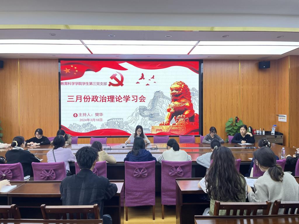 3月4日至19日,我院六个学生党支部于明德楼教室陆续召开3月份政治理论学习会,会议由各党支部书记主持,支部全体党员参加。