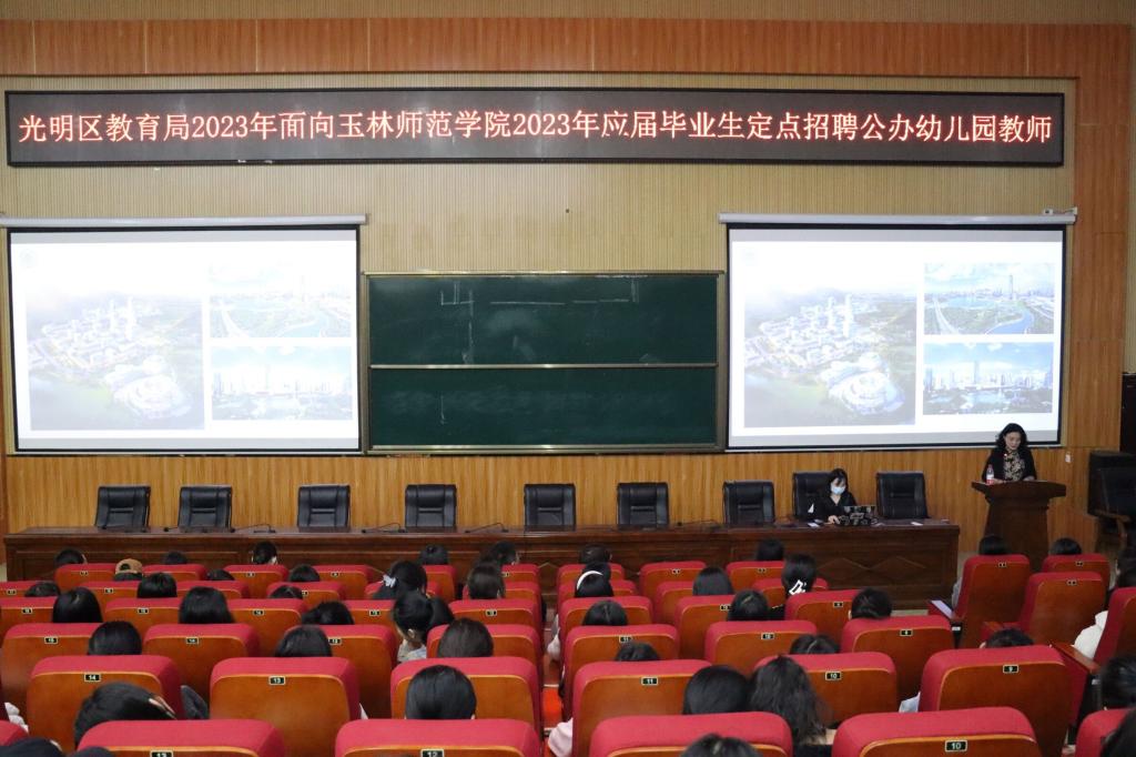 本次精心设计的专场招聘会,主要面向我院学前教育专业招聘。招聘会共3天分阶段开展了现场宣讲、面试考核、签约仪式等环节。宣讲会上,240余名学前教育专业毕业生倾听了光明区教育局的现场宣讲和答疑,双方互动频繁、交流深入,现场气氛十分活跃。宣讲会后90余名毕业生投送了简历,80余名毕业生接受面试考核等环节。经过考核,最终64名毕业生通过面试拟录用。