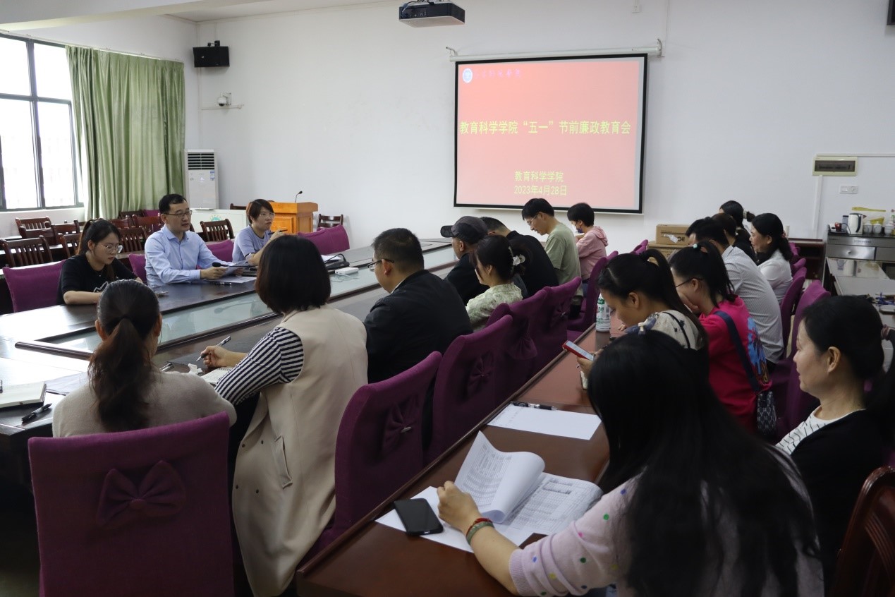 为营造“五一”期间风清气正的节日氛围,4月28日上午,我院于我校东校区明德楼学院会议室召开“五一”节前廉政教育会,此次会议由我院党委副书记、纪委书记李尚芳主持,我院科级以上干部、全体辅导员及班主任参加会议。