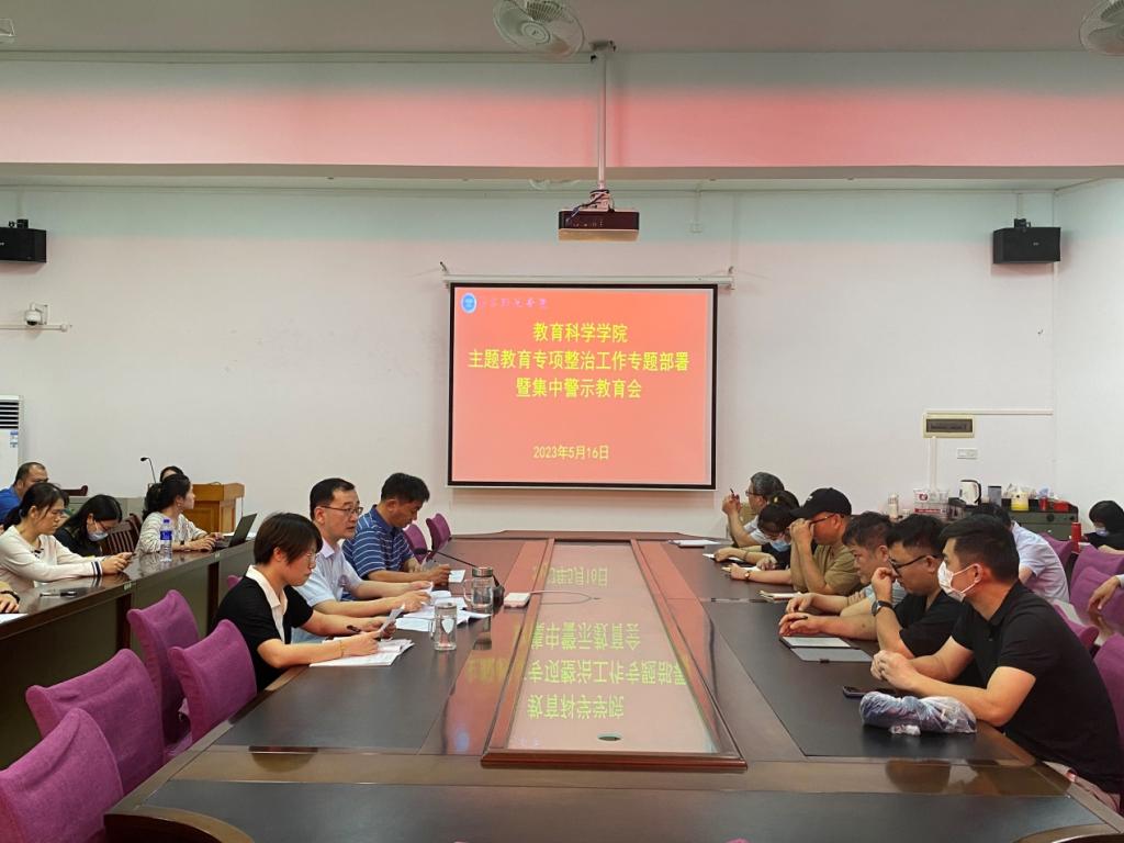 5月16日下午,我院于明德楼310会议室召开主题教育专项整治工作专题部署暨集中警示教育会,学院领导班子成员、全体教职工参加了此次会议,会议由学院党委书记崔海波主持。