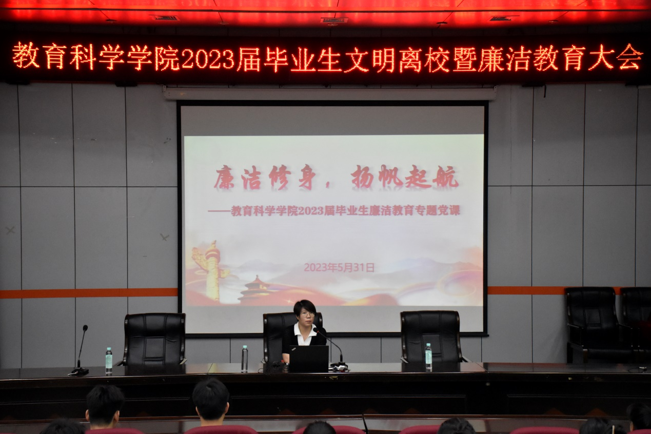 扎实推进主题教育,进一步加强大学生廉洁教育,我院分别于5月31日、6月5日在东、西校区学术报告厅召开2023届毕业生廉洁教育专题党课,本次党课由我院党委副书记、纪委书记李尚芳主讲,全体毕业生参加。