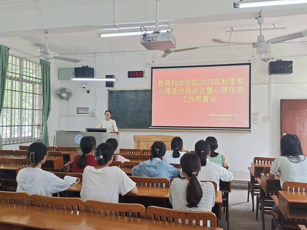为进一步加强我院学生心理健康教育工作,确保新学期心理排查工作顺利进行,9月4日中午,我院于我校西校区一栋教学楼203教室召开心理委员培训会暨心理排查工作布置会。本次会议由我院辅导员韦小小主持,学生权益维护部干部及各班心理委员参加了会议。
