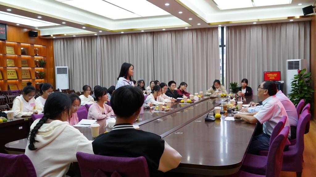 为加强师生之间的沟通,拉进师生间的距离,让2023级新生更好、更快适应与融入大学生活,10月20日下午,我院在我校东校区明德楼学院会议室开展2023级新生入学教育之我与院长面对面座谈会。本次座谈会由我院团委书记李欣怡主持,我院院长陈庆文,副院长谢清理,新生代表参加。