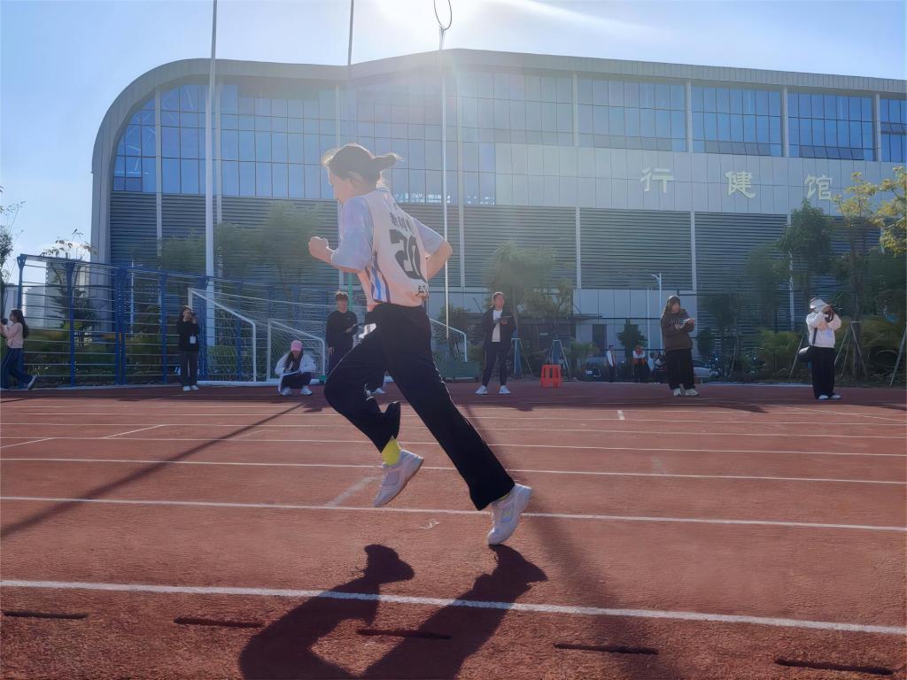 赛前,运动员进行下蹲、开合跳、原地小跑步等一系列动态热身动作,让身体逐渐适应运动强度,以最佳状态参加比赛。随着裁判一声枪响,比赛正式开始。我院运动员如离弦之箭冲出起跑线,以昂首挺胸,压紧牙关,坚定目光,运用大跨步、空心握拳、均匀呼吸、匀速前进的长跑技术,以健步如飞姿态向终点飞奔而去。比赛过程中,我院运动员们迅速发力,加快摆臂频率,提升步频,释放出全部潜能,向着终点冲刺。跑道旁的啦啦队员与看台上观众一起摇旗呐喊,敲鼓助威,加油声响彻整个田径场,将赛场上的气氛引上高潮。突破终点线后,运动员脸上露出胜利的微笑。经过激烈的竞争,比赛在欢呼声中圆满落幕。