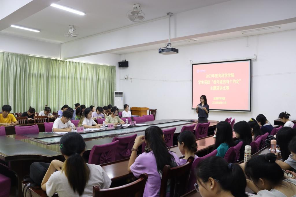 为进一步增强我院受助学生诚信意识、风险意识及感恩意识,提高资助育人成效,促进国家助学贷款工作顺利开展,6月11日下午,我院在我校东校区明德楼学院会议室开展“我与诚信有个约定”主题演讲兼讲故事比赛。本次比赛由我院小学教育(语文与英语方向)2022级学生周奕伶主持,我院团委副书记(学生)刘广超、利丽梅,学生会主席团成员罗云担任评委,部分受助学生代表参赛。