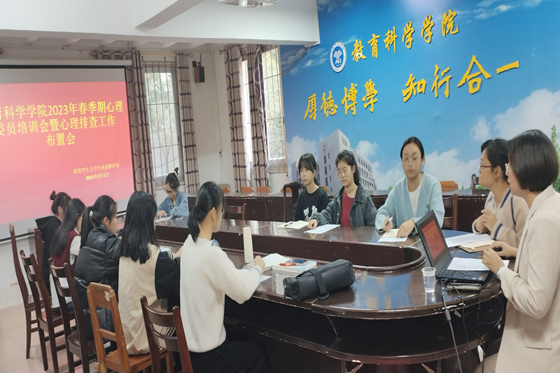 为加强心理委员对岗位的认知,帮助同学们保持健康积极阳光的心态,发挥朋辈互助的作用,3月1日,我院于西校区行政办公楼212会议室举办了心理委员培训会暨心理普查工作布置会。学工处心理健康中心的陈心玲、我院辅导员农小献,以及各班心理委员参加本次会议。