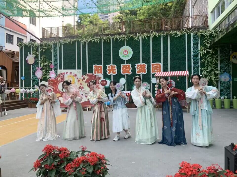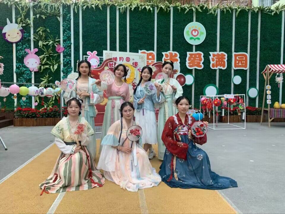 本次活动内容丰富多彩、形式多样,该园中大班组开展制作月饼、评选五星级月饼活动;小班组开展赏花灯、猜灯谜、汉服走秀活动。活动上,我院实习生身着传统服饰,为该园幼儿带来《小城谣》舞蹈作品。随后,我院实习生与幼儿共同参与制作月饼、赏花灯、猜灯谜等活动,让其感受与了解我国传统节日——中秋节,进一步增加其对中秋节浓厚民俗风情的认识。在互动环节中,实习生带领该园全体幼儿共同表演《中秋》手指律动操,学习唐诗宋词,领略中华民族文化的博大精深。最后,该幼儿园主任对本次活动进行总结发言,她表示,今后将继续举办类似活动,让更多孩子了解与传承中华民族优秀传统文化,同时也希望我院实习生共同参与到实践活动,培养其成为优秀教育工作者。