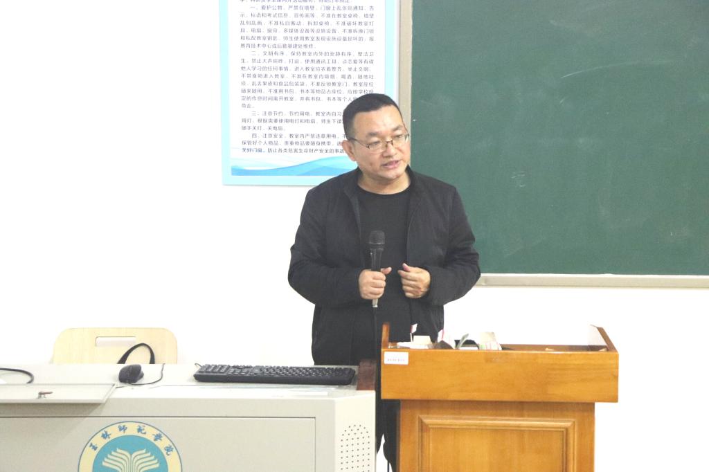 12月12日晚,我校在明德楼412教室开展“赏析不一样的学校文化”主题讲座。本次讲座由副教授和小军主讲,我校部分学生参加。