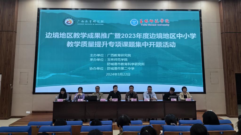 3月22日-23日,由广西教育研究院主办、我校和防城港市教育科学研究所承办的边境地区教学成果推广暨广西教育科学“十四五”规划2023年度边境地区中小学教学质量提升专项课题集中开题活动在防城港市第二中学举行。广西教育研究院院长谢凌凌、广西教育研究院教研中心综合室主任韦珺、太阳成集团tyc122cc入口教育科学学院院长陈庆文、防城港市教育科学研究所所长陈振友以及专家团队出席本次活动。本次活动的主要对象是2023年度边境地区中小学教学质量提升专项课题防城港市和百色市的各个课题组团队。